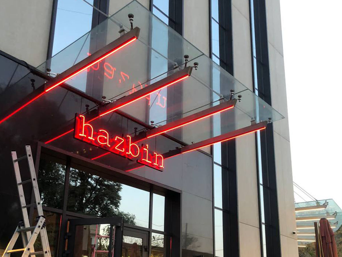 Полное оформление входа: вывески, козырьки, колонны, световые панели. Сделаем так, чтобы ваш бизнес выглядел солидно и привлекал больше клиентов.